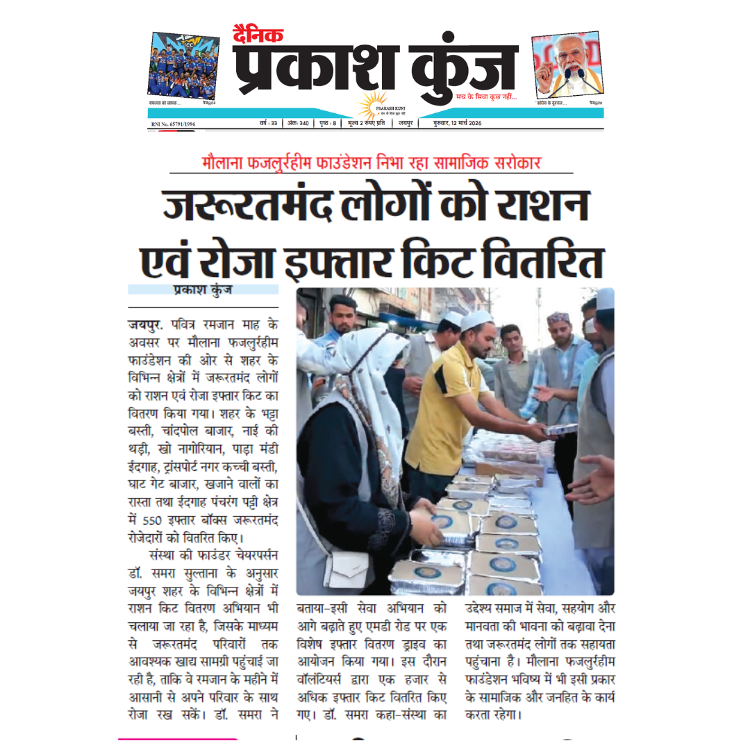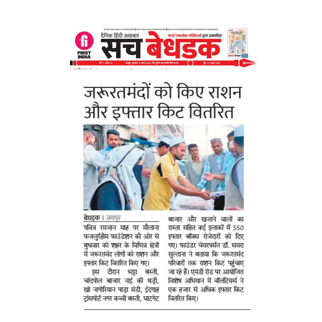 Maulana Fazlurrahim Foundation distributed food and iftar kits to support economically weaker families. The initiative highlighted the foundation’s commitment to social welfare and community service.