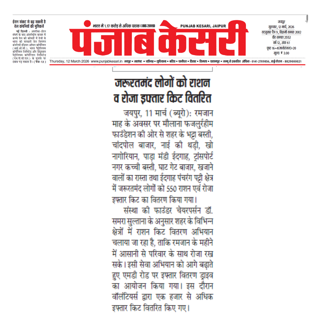 The foundation organized a ration and iftar distribution drive to assist needy families during Ramadan. The effort was appreciated as a meaningful step towards helping the underprivileged.